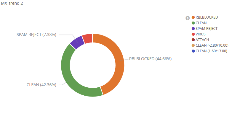 In tutta questa mole di messaggi cosa viaggia? Sono tutte email buone? Vi riportiamo un grafico di questi giorni fatto sugli MX di posta di Moviement  del nostro sistema Flexmail per farvi vedere cosa arriva.